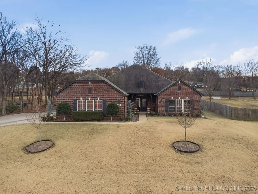 Designed for comfort today and flexibility for the years ahead, this beautifully maintained single-level home offers timeless style and thoughtful functionality for every stage of life. Nestled in a quiet neighborhood with exceptional access to major highways, this home blends peaceful living with everyday convenience. Designer finishes and quality craftsmanship are showcased throughout, including a stunning floor to ceiling stone fireplace and wood beam-accented ceilings that create a warm, inviting focal point. The home and bathrooms are handicap accessible, making it ideal for aging in place or multigenerational living, without sacrificing design or comfort.This highly functional floor plan includes 3 bedrooms, 2.5 baths, and a versatile second living area that could easily serve as a forth bedroom, home office, or flex space. Exceptional storage throughout, an incredible laundry room, and a spacious 3 car garage with built in shelving add to the home's everyday ease. Situated on approx. 0.70 acres, the property is professional landscaped and equipped with an irrigation system and leaf-guard gutters. meticulously cared for and move-in ready, this home offers space, accessibility, and peace of mind in a setting designed to grow with you.